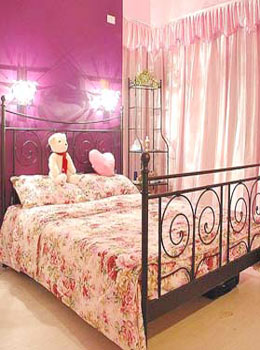 你也可以運用一些小技巧,把你的臥室布置的與眾不同。如在屋頂裝上長型的白熾燈,在燈的下方兜上一層白色輕質(zhì)透明的幔布,使強烈的燈光變得柔和,使房間看起來充滿情調(diào)。你也可以在床下裝上一盞藍色的燈,讓進入房間的人只看得到燈光而看不到燈泡,使你的床看上去象漂浮在水上一樣,這種設(shè)計會讓每個進過你房間的人感到你的別具匠心。