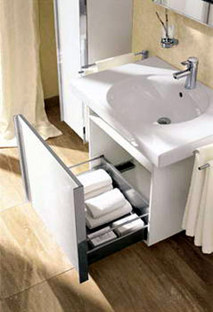 充分利用洗臉池下面的空間??梢栽谄渲性O計一個儲物柜,放入毛巾、牙刷、牙膏、及各式洗浴洗頭用品,也可以用來儲存衛(wèi)生紙和衛(wèi)生巾。