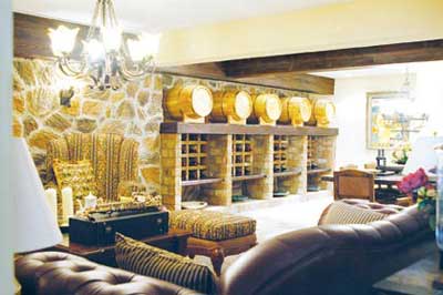 陽(yáng)光明媚的午后,太陽(yáng)斜進(jìn)入室內(nèi),暖暖地照在天然的裝飾材料上,留下斑駁、溫暖的影子,天、地、建筑融合著屋內(nèi)沉靜、幽雅的格調(diào)。用毛石裝飾的墻面,以及真皮沙發(fā),紅酒桶壘成的酒柜,使得整體家居裝飾透露著西班牙斗牛士的勇敢智慧與多情重義。