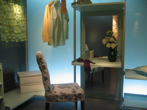 隨天氣轉(zhuǎn)暖,羽絨服也被時尚春裝取代,衣帽間自然也應(yīng)換一種表情,果綠和蛋清色成為私秘空間的色彩首選。本案中,博洛尼設(shè)計師將梳妝臺鑲嵌在特質(zhì)玻璃墻中,配以淺綠色的家居配飾,頗具田園般浪漫情調(diào),恬淡與知性氣質(zhì)悄然蔓延。