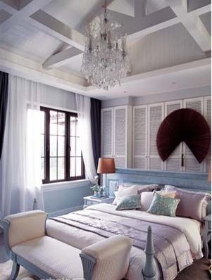 實(shí)用主義和浪漫主義可以在臥室中并存,藍(lán)白色調(diào)浪漫而沉靜,藍(lán)色清透與白色的安靜相互映襯,有著海一般的夢幻感覺,優(yōu)雅的配色似如歌的行板,浪漫溫馨,裝點(diǎn)出如水一般純凈又內(nèi)涵豐富的臥室氛圍。