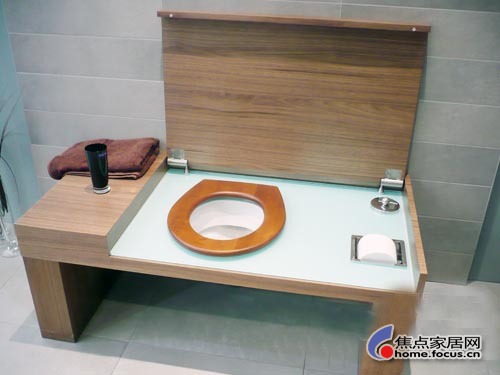 沒有打開蓋子以前,我一直都以為這只是一張普普通通的實木椅子,打開后才知道內(nèi)藏玄機。座便器、廁紙架一目了然。這樣的設(shè)計,不僅將座便器隱藏起來,衛(wèi)生間更加整潔美觀網(wǎng)絡(luò)超女,而且使用后蓋上蓋子,既可以杜絕臭味,又可以當成椅子使用,一舉多得。馬桶采用自潔型釉面,便于清潔并抑制細菌滋生。一個與家具設(shè)計相匹配的木質(zhì)座椅既可用做座位,也可當成儲物區(qū),衛(wèi)生間紙卷及衛(wèi)生間清潔刷chinaren,均可放入一塊不透明的玻璃板中。由于采用了緩降馬桶蓋技術(shù),所以可以無聲地蓋上馬桶蓋。