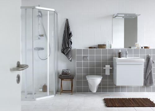 衛(wèi)生間有洗漱、妝容等功能, 因此既需要有收納洗漱用具的柜子,又需要有至少一面梳妝用的鏡子。此法恰恰將這二者合二為一,將鏡子貼在水盆上方的柜門上,梳妝起來也很方便。