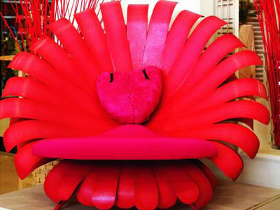 粉色太陽(yáng)花瓣構(gòu)成了沙發(fā)的整體,花蕊設(shè)計(jì)成桃芯靠墊,花蒂則成為整個(gè)沙發(fā)的支撐點(diǎn)。坐在這吐蕊的太陽(yáng)花沙發(fā)上,仿佛回到那個(gè)花仙子陪伴的童年。