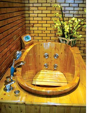 但沒想到的是,也有人別出心裁,在原始木桶的傳統(tǒng)手工藝中融入現(xiàn)代的設(shè)計(jì)元素,使木浴桶擺脫了“花瓶”的煩惱,不僅保留了復(fù)古、浪漫的外形設(shè)計(jì),還增添了現(xiàn)代化的用水系統(tǒng),實(shí)木材料的環(huán)保和健康更增加了木浴桶的身價(jià),木浴桶備受追捧。