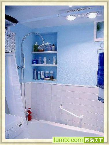 ◎若想把浴室布置得明亮、繽紛,要特別注意色調(diào)的搭配。尤其是浴室中的細(xì)碎物品,如果很難將它們歸在統(tǒng)一色系中,就要考慮用彩色的盒子或其它手段將它們巧妙分類。要讓空間更有親和力,離不開“花卉”這樣的流行元素。在浴室里適當(dāng)?shù)攸c(diǎn)綴些花卉圖案的物品,甚至可以養(yǎng)些植物。要選用最喜愛的顏色裝飾墻、地以及不易改變的物品。如果你的色彩傾向很容易發(fā)生改變,最好用白色,這樣方便通過軟裝飾改變浴室的色彩。