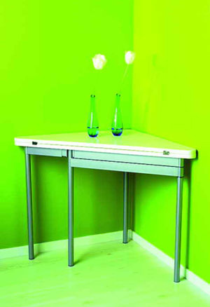 墻角往往是一個被人們忽略的角落,其實只要選擇了合適的家具,墻角也能“變廢為寶”。一個可以沿對角線折疊的小方桌是你改造墻角的好幫手。折疊起來后,它就變成了富有情趣的小角桌,在使用的同時,還可以裝飾墻角。展開后,它就成了小方桌,吃飯、工作時都可以使用。