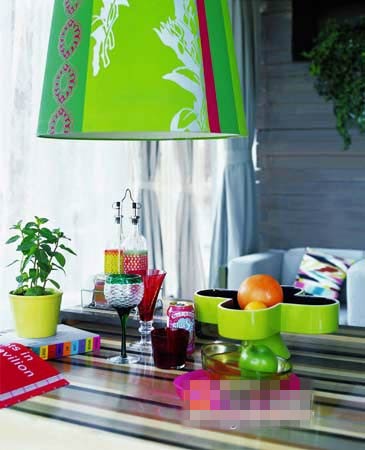 時尚的綠色、鮮橙、玫紅,只要掌握色彩的平衡原則,家也可以成為派對中最嫵媚惹眼的雞尾酒。燈具深淺不一的綠色塊成為搶眼的主角,淡綠果盤中的鮮亮橙色與玫紅托盤中的清脆綠色交織,恬淡中抒發(fā)著甜蜜的氣息。