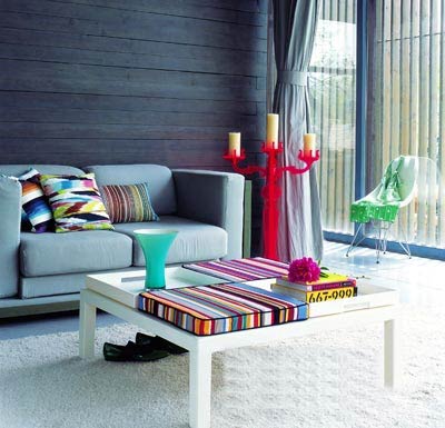 撞色,似乎已經(jīng)不再是藝術(shù)家或者設(shè)計師的專利,只要用點心,平常人也能制作出令人傾心的上品。灰色夠時髦,看得久了,有些冷清,也沒有快樂,其實你可以試試用粉色或藍色系來調(diào)和。把各種色彩大膽地組合在家具上,空間的層次也得以拉伸。