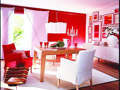 臺布、床罩、枕套、窗簾、燈具等在圖案風(fēng)格、色彩上都要協(xié)調(diào)。墻面、地面是室內(nèi)最大的面積,它們的色彩應(yīng)同家具的色調(diào)相鄰近,地面色彩應(yīng)稍深于墻面。室內(nèi)色彩是由房間六大面、家具、紡織品、家電、裝飾物品、植物的顏色構(gòu)成。新房中除了選擇一種顏色作為房間的主色調(diào)外,還需要有一種小的變化。感情熱烈的,以暖色系中的紅、黃、赭、褐為主體;喜田園詩趣的,以冷色系中的綠、藍(lán)等色為主體;喜素雅風(fēng)格的,以中性系中的白、灰為主體色,采用面積、明暗、純度上的對比來活躍色彩氣氛,更是恰到好處,對于不大的新房,不適合濃重的顏色。若“六大面”選擇了淺一點的顏色,如牛奶色、淡藍(lán)色、淺綠色、粉紅色等單純色,那么,帷幔、窗簾就應(yīng)該選有花色的面料。
