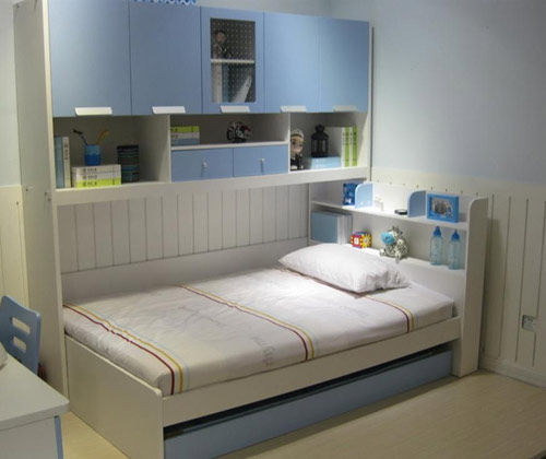 針對(duì)有些家庭已經(jīng)給孩子買了單層的兒童床,家長(zhǎng)可以向孩子的床上和床下要空間,即床下可以做儲(chǔ)物的抽屜,床上的墻壁可以做上吊柜用來(lái)充當(dāng)書(shū)柜。