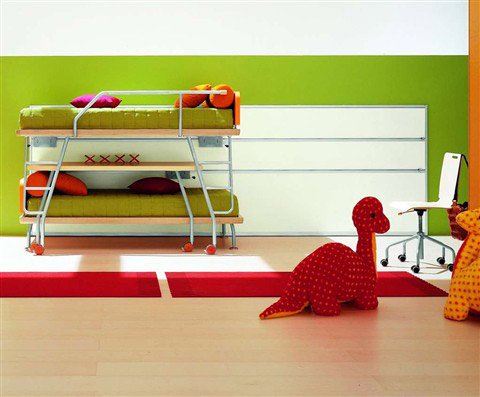 能夠組合的家具盡量組合在一起,比如做成高低鋪的床,床的下面就是孩子的寫(xiě)字臺(tái)、儲(chǔ)物柜等,這種床占地面積不到4平方米,然后只要再增加一個(gè)衣柜就行了,特別適合小戶型家庭,房間正當(dāng)中的空間可留出來(lái)供孩子玩耍、游戲。