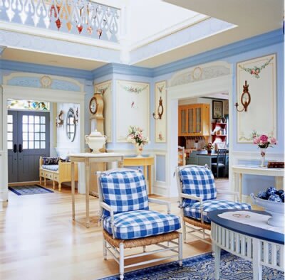 1、藍(lán)色和白色或黃色的搭配也很流行,乳白色的油漆粉刷替代家具鍍金工藝,提亮了由樺木和松木制成的家具。十八世紀(jì)末,受英式風(fēng)潮的影響大大增強(qiáng),家具也開始模仿成粉刷紋理飽滿的紅木。