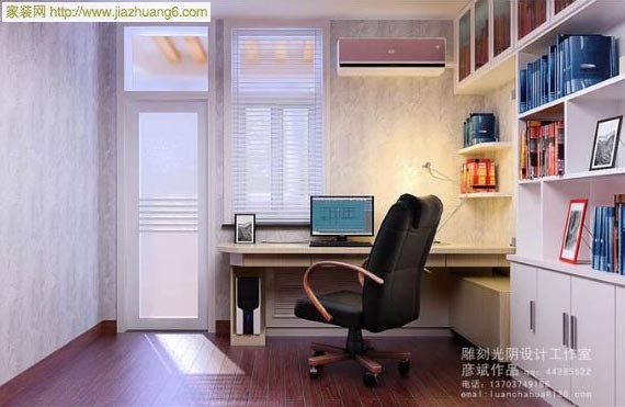 書(shū)房的室內(nèi)裝飾設(shè)計(jì)總體應(yīng)以簡(jiǎn)潔素雅、視覺(jué)寬敞為原則,不宜搞得過(guò)于花哨,若是兼作會(huì)客室,局部氣氛可以適當(dāng)活潑,而整體仍要顧及寧?kù)o,體現(xiàn)高雅脫俗的氣氛。