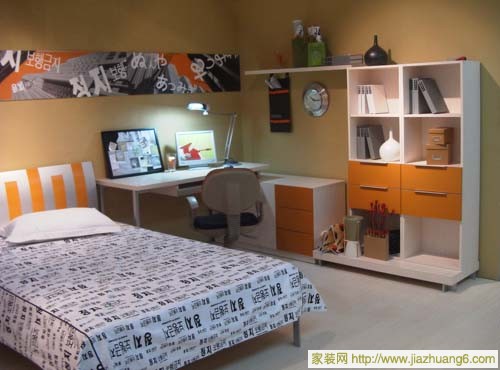 本套兒童房的配飾是以功能性為主,盡量為孩子留有發(fā)揮自己想象的空間,這個(gè)多姿多彩的空間既加深了孩子對(duì)外部世界的認(rèn)識(shí),又給予了孩子自由、嬉戲的寬敞空間,使他們在玩樂中得到想像力與創(chuàng)造力的誘導(dǎo)。一個(gè)美術(shù)作業(yè)、一件手工折紙都成為經(jīng)典裝飾的主角。例如床上方的月亮,仿佛正在編制著一個(gè)多姿多彩的夢,并讓孩子的夢想插上翅膀,盡情飛翔。由于已經(jīng)上學(xué),這時(shí)孩子的房間多了一些電器,因此在書架上、窗臺(tái)上擺上一兩簇花草,調(diào)節(jié)屋內(nèi)空氣。
