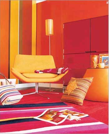 橙紅色:橙紅色令人想起秋天的果實,所以這種色彩有很濃的大自然氣息,恰當運用會使居室有一種充滿活力的感覺。在清涼的初春選一塊橙紅色的窗簾,沙發(fā)上選兩塊橙紅色的靠墊,都不失為頗有靈性的選擇。