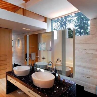看得見的風(fēng)景,是浴室中最吸引人的要素。戶外的植物、天光云影被引入衛(wèi)浴空間中,不必刻意去追求,就會(huì)得到一種沐浴在大自然中、天人合一的感覺。這樣的浴室,單扇窗戶的面積一定要夠大才好。