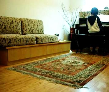 低柜上放兩個(gè)大大的`墊子,再配上靠墊——自家獨(dú)有的沙發(fā)就完成了。低柜的抽屜足以容納客廳的雜物。