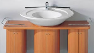 為了迎合人們希望盡可能充分利用空間的需要, 現(xiàn)在很多浴室家具不僅僅具有一項功能,例如圖中所示的坐椅,表面有可以打開的蓋子,蓋子一面是鏡子,可用于化妝,而椅坐里面還可以放一些零碎物品。高一些的帶抽屜的柜子也是如此。
