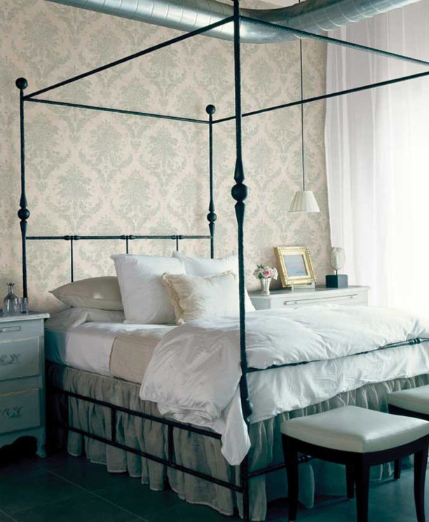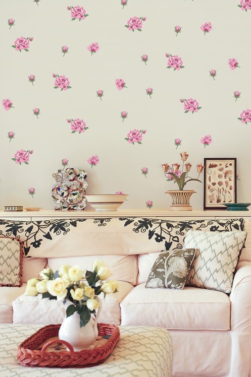 第六步:蓋貼的壁紙裱上去,拼好圖案,用刮板刮平壁紙,用壓輪壓平。