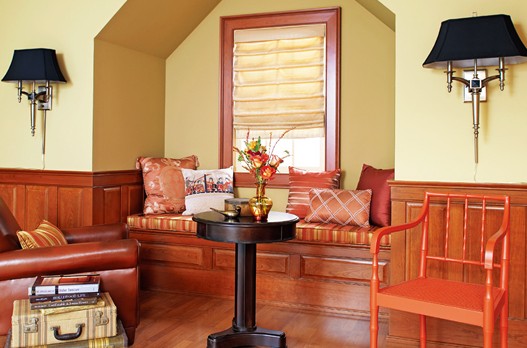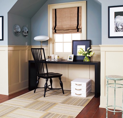在偌大一個(gè)客廳的轉(zhuǎn)角處,獨(dú)獨(dú)剩下一塊凹處不知如何利用,嵌入現(xiàn)代風(fēng)格的寫字桌和鄉(xiāng)村風(fēng)格的坐椅,混搭和諧,還可充當(dāng)小書房,實(shí)在是節(jié)省開支的最好方法。
