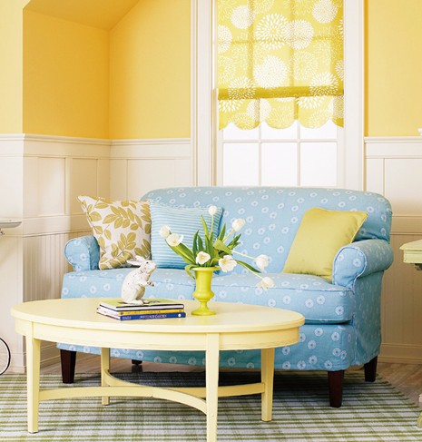帶有窗戶、陽光的凹處正式和被改成休閑區(qū)。在臥室一側(cè)的凹處內(nèi),增添一個(gè)尺寸剛好的藍(lán)色碎花沙發(fā),配上鄉(xiāng)村風(fēng)格的茶幾和鐵藝邊桌,便是一處舒適浪漫的休閑角落,有了這樣的改動(dòng),臥室不再單調(diào)。