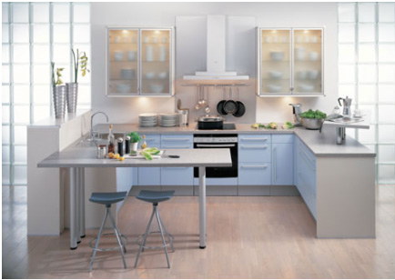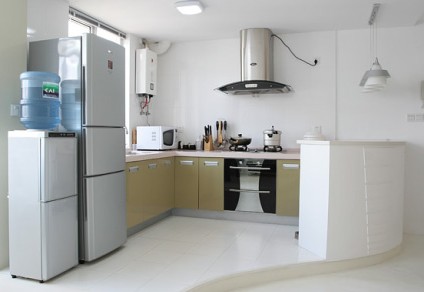 由于二次裝修的廚房面積一般都比較小,所以更適合一字型和L型的櫥柜。一個(gè)完整合理的廚房是由洗物區(qū)、料理區(qū)、烹飪區(qū)組成,是一個(gè)舒適便利的三角工作區(qū)。長方形的廚房較常見,大多數(shù)家庭在櫥柜設(shè)計(jì)時(shí)都采用了簡單的L形,使洗滌區(qū)、操作區(qū)及烹飪區(qū)都設(shè)計(jì)在一條直線上,操作起來非常方便。
