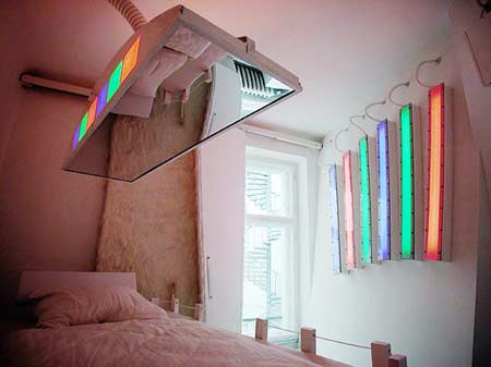 鏡子屬金,鏡的擺放,對夫妻影響最大。主人房的鏡反映到主人的床,特別是床頭有鏡反射,代表夫妻拗頸不和,甚至有第三者。在夫妻的房間內(nèi),置放鏡子不受鼓勵(lì)。鏡往往代表增旺一粒夫星,或增旺一粒妻星,無論增旺夫星還是太太星,均對婚姻不利。因此不管夫妻是要金還是不要金,在睡房內(nèi)擺鏡,是都非常危險(xiǎn)的行為。如房內(nèi)有梳妝臺(tái),亦必定需要放鏡子,解決方法之一,可用一面座臺(tái)鏡去代替,照的時(shí)候從抽屜拿出來,照完后放回抽屜內(nèi)。另一方法,是裝鏡后,在鏡前面加一塊簾,需要時(shí)拉開,不需要時(shí)拉上。不過房間內(nèi)依然還有另一種鏡出現(xiàn),稱為“暗鏡”,即暗中的鏡,不為人知,那是什么?是電視機(jī)!