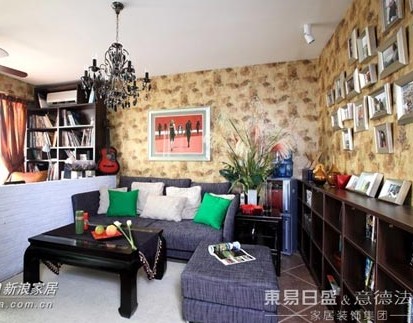 客廳,一面墻設(shè)計成書柜,收柜做得比較低,上面可以放物品,這面墻做成了一面記憶墻,照片,裝飾畫,都可以掛在上面,親朋好友來了,還是一道不錯的風景線呢。