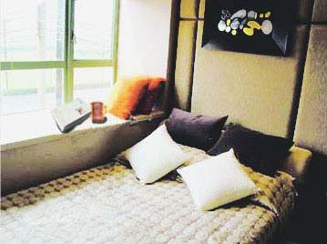 工作了一天,最希望找個(gè)地方懶散一下。這時(shí)候飄窗又可以派上用場(chǎng)。簡(jiǎn)單的可以是軟軟的氈子(或折疊墊子)外加兩個(gè)特色的小抱枕。如果您的飄窗屬于大型轉(zhuǎn)角型的,先按窗臺(tái)的尺寸訂做個(gè)薄薄的布藝坐墊,并且用相同色系的方枕沿窗臺(tái)弧形排列作為靠背,最后再在中間擺上一張小茶幾。您可以在這張獨(dú)特的休閑飄窗躺椅上或冥想、聽音樂,或與三五友人品茶、聊天、打牌。