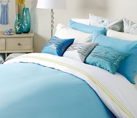 水藍(lán)色靠枕+亮色點(diǎn)綴 營(yíng)造清新臥室