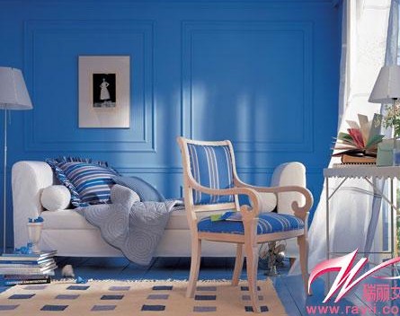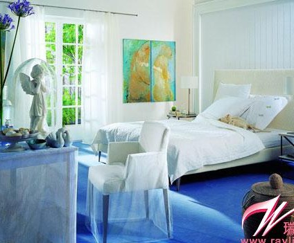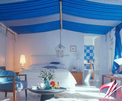 藍(lán)色墻面+白色床具 造就冰爽臥室