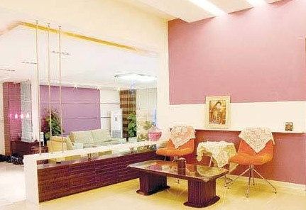 客廳主題顏色確定后,屋子的其它部分色彩也隨之確定。玄關處一側(cè)為廚房的外墻,用石膏板做成條狀,全部為紫色,在中間裝上落地鏡,既實用,又能擴展空間。另一側(cè)的鞋柜如果用紫色會顯得沒有層次,可以用色調(diào)接近的胡桃色,而墻垛則與另一側(cè)相協(xié)調(diào)均為紫色橫條。