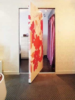 設計師劉東新為一對80后夫妻設計了一款彩繪旋轉(zhuǎn)門,巧妙地集功能性與時尚于一體。由于房間只有60平米,空間小,便用彩繪旋轉(zhuǎn)門把客廳和臥室巧妙隔開,墻壁和門合二為一,活動的彩繪門墻讓主人進出時,顯出“柳暗花明又一村”的意境。