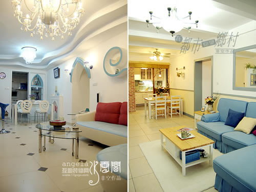 考慮到海濱大環(huán)境的因素,我給這兩家都定了帶點(diǎn)海洋風(fēng)格的“藍(lán)調(diào)”,在不變動戶型結(jié)構(gòu)的前提下;一個用柔美曲線來表現(xiàn)其嫵媚和流動;一個用硬朗的直線條展示粗放和閑適。通過不同風(fēng)格的硬軟裝飾元素加以區(qū)分,家具、燈具、窗簾等元素則是走向兩個極端,于是便有了這兩個同一個“模子”做出來的不同風(fēng)格的作品。當(dāng)然,這兩家人也私下偷偷問我比較滿意哪家,答案!!當(dāng)然是誰問我我就喜歡誰家...