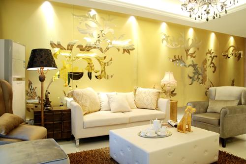 以金黃色鏡面為素材,展開對空間格局的改善和視覺的改變,并以鏡面加工工藝的應(yīng)用效果來實現(xiàn)奢華的色彩主調(diào)和符號識別,在實現(xiàn)過程采用了簡化的方法,卻保持了奢華風(fēng)的韻味。中在這條設(shè)計主線上串連起飾材 、家具 、配飾、燈光等素材的展現(xiàn),在空間中縈繞回旋出一曲金色的樂章。