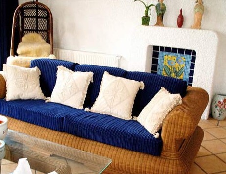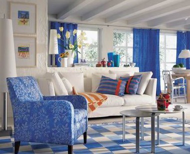 地中海風(fēng)格的三種典型顏色搭配:藍(lán)與白;黃、藍(lán)紫和綠;土黃及紅褐。