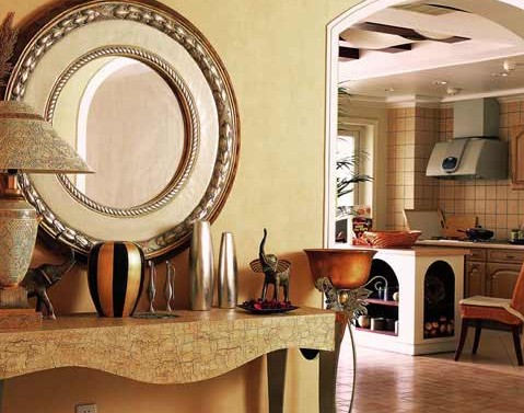 希臘的白色村莊與沙灘、碧海、藍(lán)天連成一片,甚至門框、窗戶、椅面都是藍(lán)與白的配色,加上混著貝殼、細(xì)沙的墻面,小鵝卵石地,拼貼馬賽克、金銀鐵的金屬器皿,將藍(lán)與白不同程度的對比與組合發(fā)揮到極致。這些地區(qū)的國家大多數(shù)信仰伊斯蘭教,而伊斯蘭教的主色調(diào)為藍(lán)白兩色。