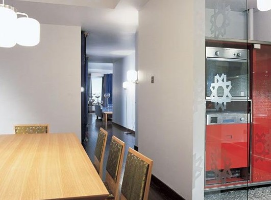 合理的設(shè)計,利用它們之間的互相折射,在光源很少的情況下,也完全可以營造出燈火輝煌的效果。例如在餐廳中,我們可以在墻面與天花上大面積安裝鏡子,選擇玻璃臺面餐桌。這樣,不但使空間視覺變大,而且當(dāng)燈打開時,經(jīng)過鏡子的層層反射,燈光會成倍增長,空間更加絢麗奪目。不銹鋼制品的功能與鏡子相同,但更適合局部空間的小點綴。