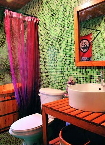道具:碎花布藝是田園風格的標志元素,田園主義衛(wèi)浴間可以在沐浴區(qū)、隔斷區(qū)采用碎花布藝,但如果要使用布藝,衛(wèi)浴間的通風條件一定要好。如果不愿意使用瓷磚,還可以用防水壁紙代替,防水壁紙的圖案十分豐富,可以根據(jù)衛(wèi)浴間的家具顏色搭配。