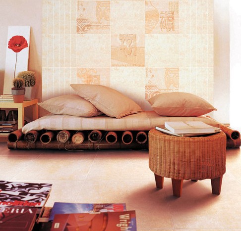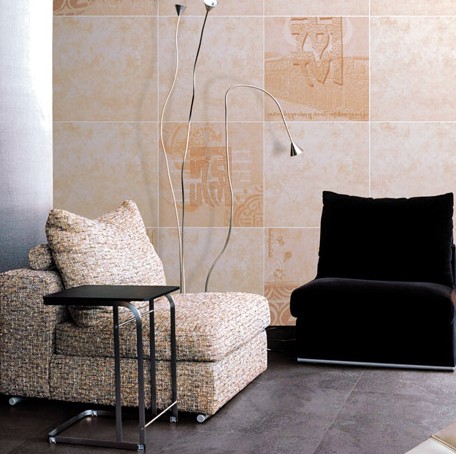 客廳的輪廓以斜插竹桿、磚體屏風(fēng)劃分,豪華的歐式吊燈與熱情洋溢的“威尼斯春天”系列地磚上下呼應(yīng),真皮沙發(fā)套裝,硬木茶幾,墻面是由墻壁上凹凸混鋪的瓷磚和茶色的反光鏡片巧妙的穿插。整個(gè)客廳活潑而不炫亂,更顯現(xiàn)代風(fēng)尚,無論新朋舊友皆可由衷感受到主人的熱情好客與雍容大方。