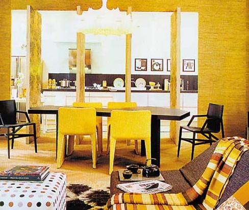 7.不管是如何使用金色,挑選的時候一定要通過很多樣品體會一下大面積使用時的效果以及和房間里其他家具配飾配合的效果,否則容易讓金色太跳。金色壁紙施工的時候要注意接縫的處理,一定要光滑無痕,使柱子成為一個金色柱子,是“體”的概念,而不是柱子或墻面上貼了金粉。