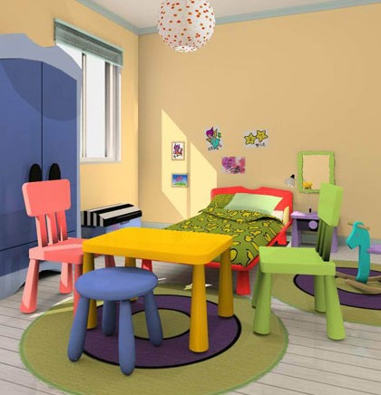 需要特別注意的是,對于大紅、橘紅等過于艷麗的顏色,最好不要在兒童房間大面積使用,它們會讓兒童更加興奮和浮躁,但可小面積點(diǎn)綴,制造甜蜜的氛圍。在裝飾時,切忌用猙獰怪誕的形象,因?yàn)檫@些家飾會使孩子產(chǎn)生可怕的聯(lián)想??傊瑑和块g的裝潢要有針對性,從而促進(jìn)孩子健康茁壯成長。