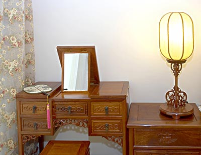 用布飾做成簾子,將其遮掩起來。若一定要裝鏡子,也以一面墻為宜,不要兩面都裝,造成反射。