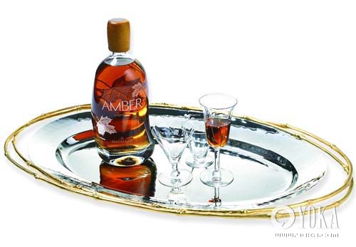 L’Objet公司的Evoca托盤為全手工打造。盤身材質(zhì)選用優(yōu)雅的黃銅和光彩奪目的鎳,耐用度和抗腐蝕能力絕對(duì)一流,托盤邊上鑲包著竹節(jié)形的雙重花邊,用料全部是24K黃金,而且每一只盤子的花邊紋路是完全不一樣的。 約¥2000/套 。
