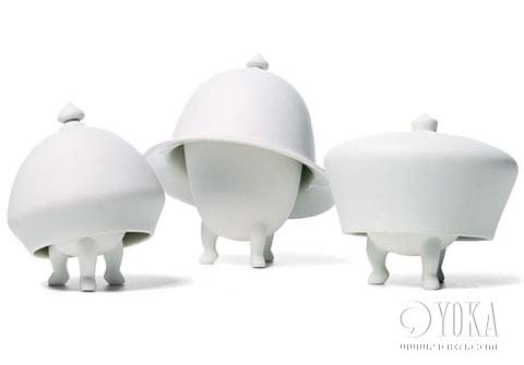 荷蘭設(shè)計(jì)師Jorine Oosterhoff設(shè)計(jì)了一套名為“瘋狂帽子”的搞笑瓷碗??瓷先ゾ拖袷且蝗喝吮幻弊涌圩×祟^、蒙住了眼,而它們還非要執(zhí)拗地走下去,一邊嘴里還在說:“怎么天突然黑了?”Jorine Oosterhoff甚至還給它們起了搞笑的名字:瘋子、瘋魔和半瘋(左起)。 約¥2100/只
