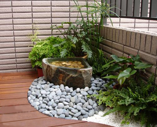 在地上鋪上鵝卵石,劃分一塊區(qū)域種上綠色植物,掛些吊蘭,一個(gè)理想中的小花園就誕生了。這樣即可賞心悅目又可呼吸新鮮空氣。讓來訪的客人都能感受到自然的氣息。