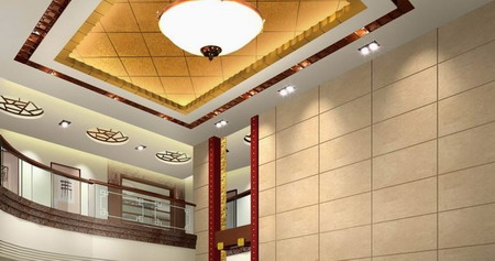 客廳屋頂?shù)奶旎ò?,范圍較大,對(duì)于住宅來(lái)說(shuō)是“天”的象征,因而相當(dāng)重要??蛷d天花的裝飾與布置主要有以下幾個(gè)注意事項(xiàng):