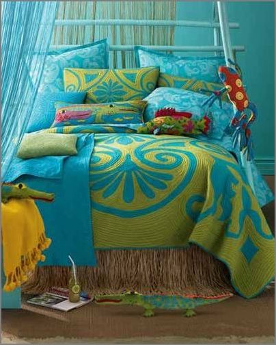 床品:歐式的鐵藝大床搭配紅色的絲綿被,被套上同心圓的縫線帶來極強(qiáng)的裝飾感。