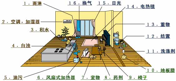 剛剛裝修好的房屋、會從裝修材料和家具中散發(fā)出甲醛、刺激眼睛或產(chǎn)生異味、要注意通風(fēng)換氣,要注意結(jié)露后的水滴不要滴落到地板上。